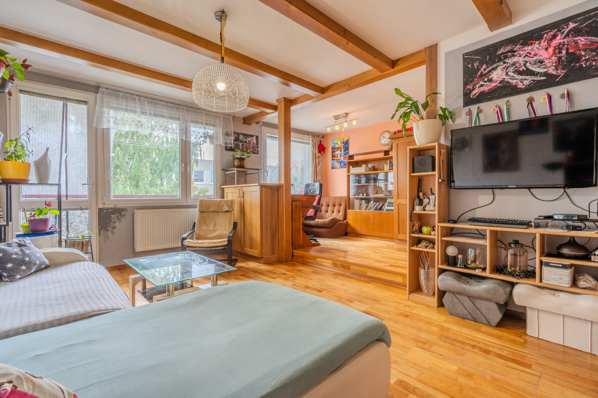 Prostorný byt 4+kk s balkonem v Říčanech u Prahy – klidné bydlení s výbornou dostupností Hledáte pohodlné a prostorné bydlení pro rodinu v klidné lokalitě s perfektní dostupností do Prahy? Tento byt o dispozici 4+kk a podlahové ploše 89 m², nacházející se v oblíbených Říčanech, nabízí ideální kombinaci prostoru, klidu i občanské vybavenosti. Byt se nachází ve 2. patře nízkopodlažního panelového domu bez výtahu, což zajišťuje klidnější prostředí s menším počtem sousedů. Dům je dobře udržovaný a umístěný v tiché části města, v bezprostřední blízkosti přírody i sportovišť. Byt je v dobrém a udržovaném stavu, připravený k okamžitému nastěhování. Praktické vestavěné skříně v chodbách i pokojích poskytují dostatek úložného prostoru. Velkou výhodou je samostatná šatna, kterou lze případně využít i jako komoru nebo špajz, podle vašich potřeb. Součástí bytu je balkon o velikosti 7 m² s výhledem do zeleně, ideální pro odpočinek, a dále praktický sklep o ploše 5 m². Říčany jsou dlouhodobě jednou z nejžádanějších lokalit v okolí Prahy. Najdete zde kompletní občanskou vybavenost – školy, školky, obchody, zdravotnická zařízení i restaurace – a zároveň výborné spojení s hlavním městem, jak autem, tak vlakem či autobusem. Tato nemovitost je skvělou volbou jak pro vlastní bydlení, tak i jako investice k pronájmu. Kombinuje pohodlí městského života s příjemnou atmosférou menšího města obklopeného přírodou. Díky rostoucí popularitě této oblasti jde o jistou volbu s potenciálem dalšího zhodnocení.